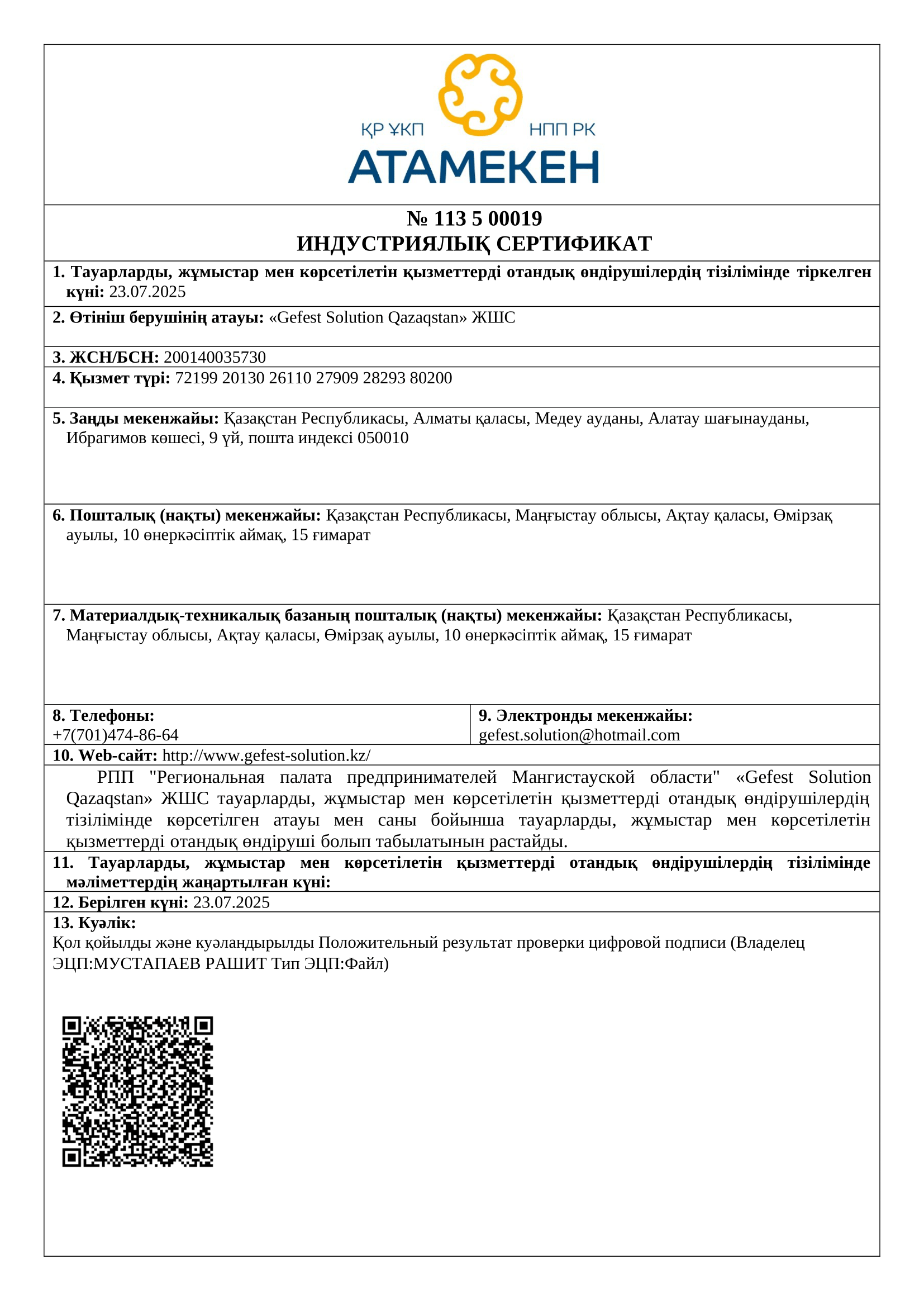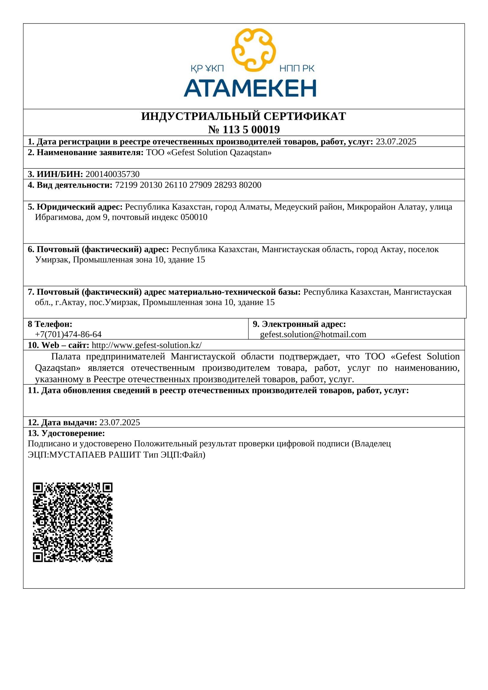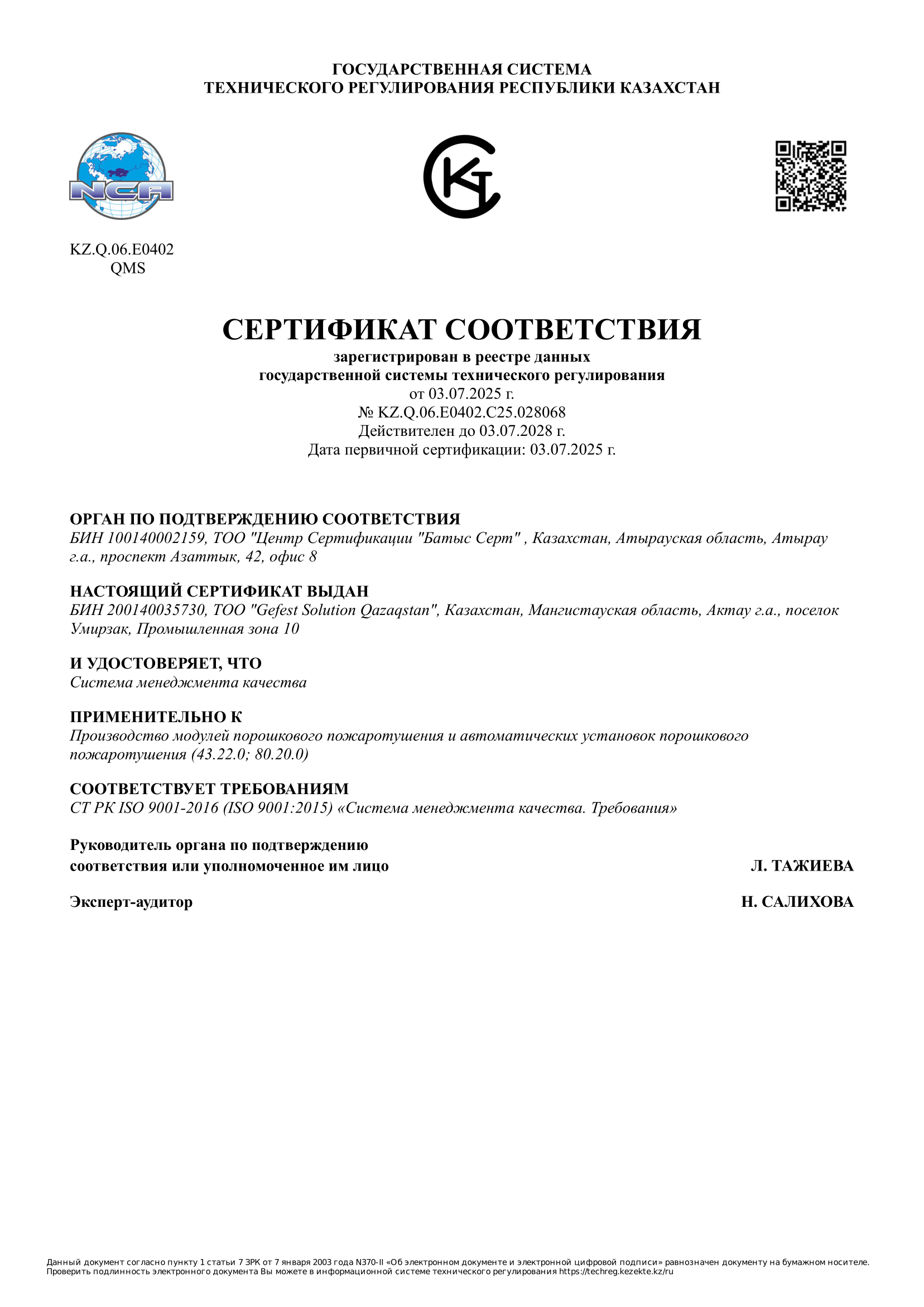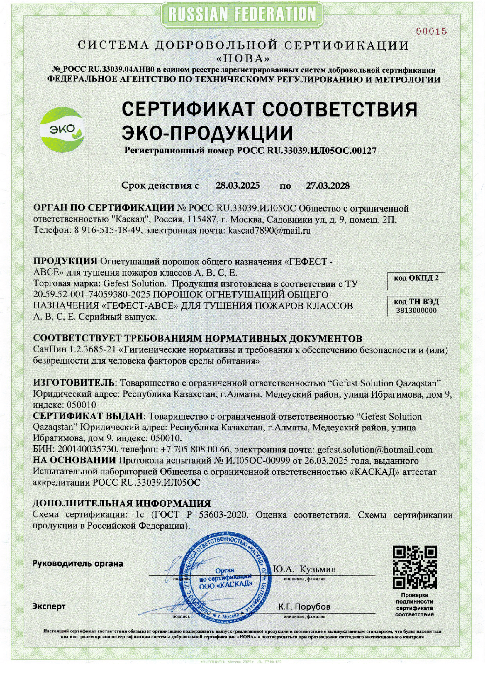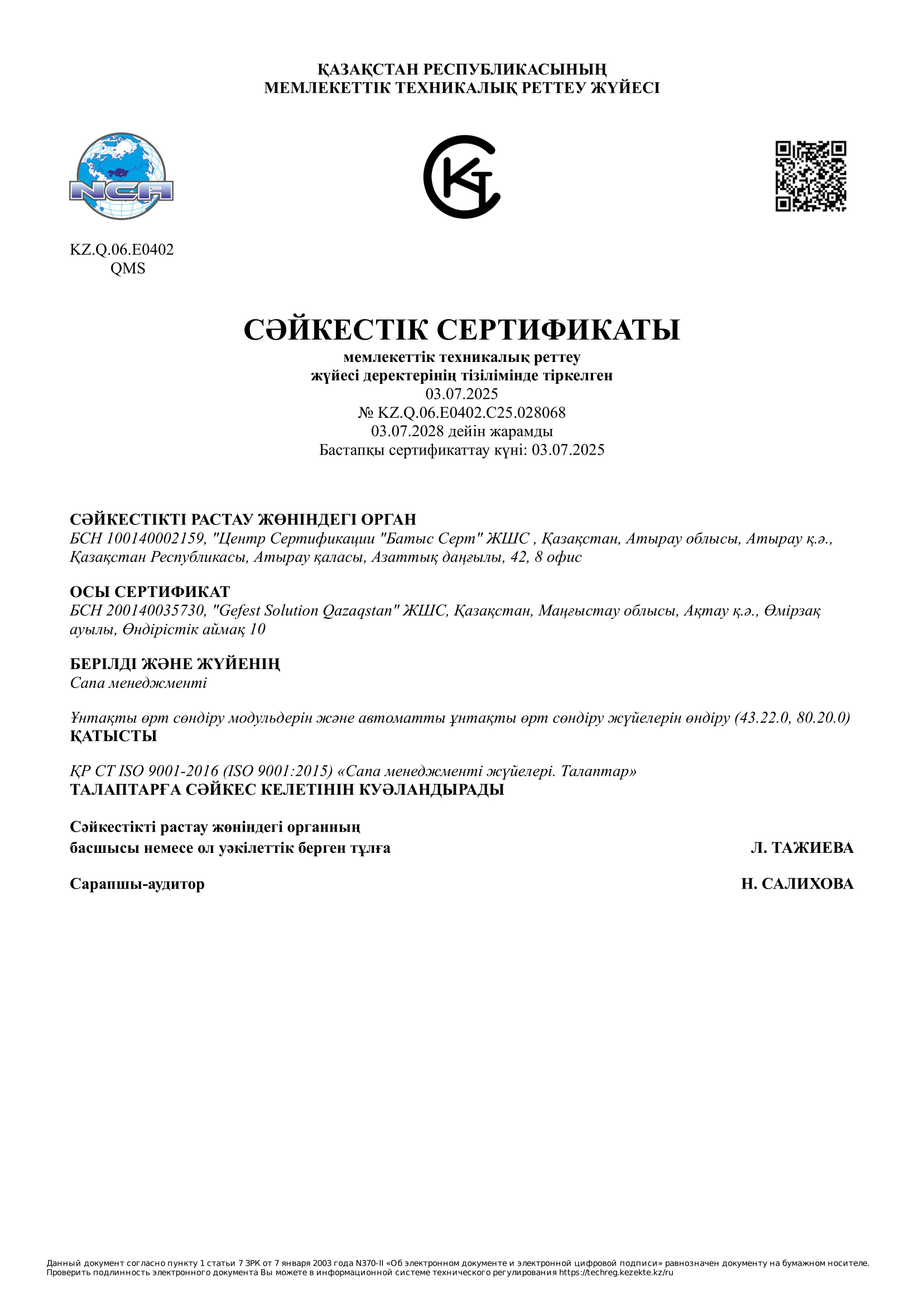 Gefest Solution Qazaqstan implements environmentally safe production in compliance with SanPiN regulations and international standards.